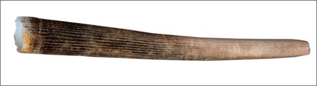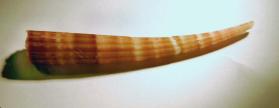 Pictodentalium formosum, 150 m, Aliguay Isl, Phil., 62x9 mm, thin walled shell, small slit, 15 ribs
