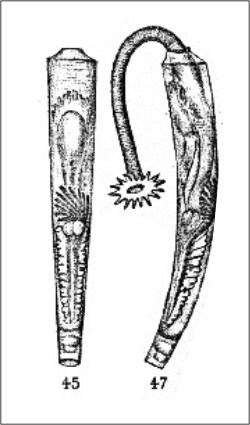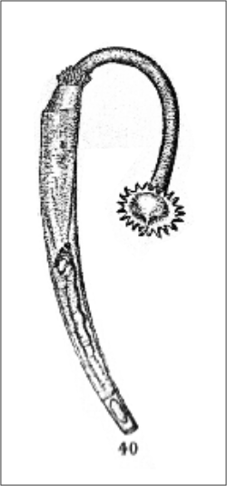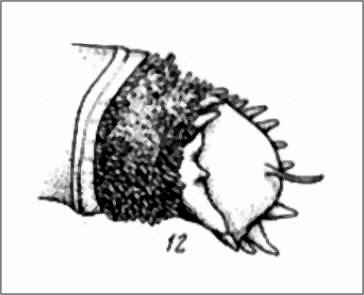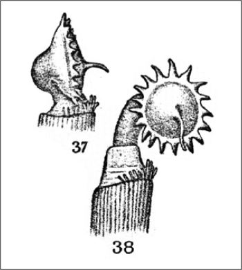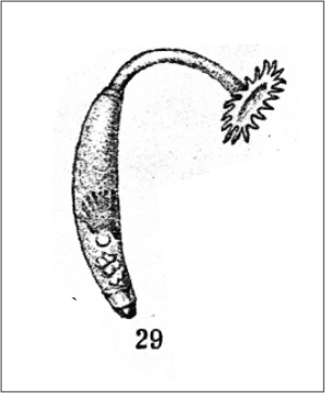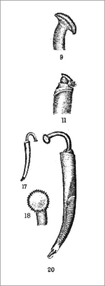 Curiously the foot of Gadila clavata (Dentalium clavatum at original diagnosis) is described to be vermiform by its original author Stimpson (1865) (see figure 9). Simroth (1894) already pointed to this peculiar finding, but the animal has been never checked again. As there are no other similar findings in the Gadila up to now this observation gives some doubt to the assignment of this species to the order Gadila. (to be continued)