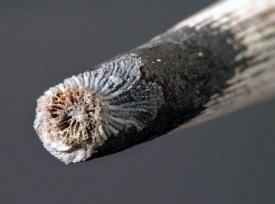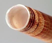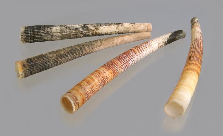 Pictodentalium spec from Broome (left) and P. vernedei with coral at apex (right)